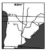 小题1:读图,根据经纬度判断图示区为南美洲南部,A地区常年受副热带高压带控制,又有沿岸寒流影响,降温减湿,全年降水很少,形成了热带沙漠气候。B对。A、C、D错。