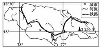 4、单选题 下面为“某岛屿的示意图”,该岛约有280万人口,岛上主峰蓝山峰海拔为2 256米。读图并结合所学知识,完成题。