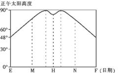 5、单选题 下图为某地一年中正午太阳高度变化示意图,图中M、N分别为EH、HF的中点,H日该地正午太阳位于正南方。读图完成以下问题。