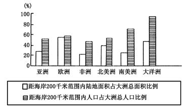 小题1:距海岸200千米范围内陆地面积占大洲总面积比例最大和人口占大洲总人口比例最小的洲分别是