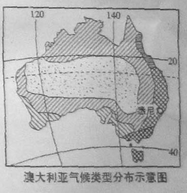 3、综合题 读澳大利亚气候类型分布示意图。回答问题。(14分)
