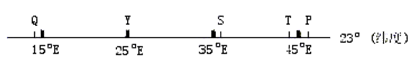 1、单选题 下图是世界地图的一段纬线,P点以东是海洋,Q点以西是海洋,S和T之间是海域。判断下列各题。