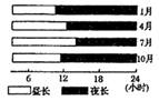 2、单选题 某地1、4、7、10各月的平均昼夜长短情况如下图所示,则该地可能位于