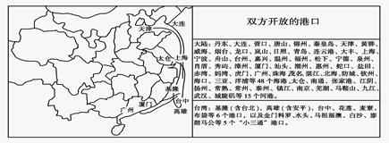 2、综合题 根据海协会与海基会台北会谈达成的协议,两岸海运直航、空运直航、直接通邮于2008年12月15日全面启动。下图是两岸开放的港口和台湾首航船只的运输路线图,据图回答下列问题。