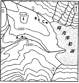 4、单选题 阿克库勒湖位于新疆阿勒泰地区(阿尔泰山南麓、准噶尔盆地北缘),因其湖水呈乳白半透明状又称“白湖”。其成因是上游冰川中的冰碛物(冰川沉积的岩块物质)经冰川运动,被挤压、研磨成白色的粉末带入河流,进入湖泊使湖水成白色。读“该湖附近的等高线地形图”,完成下列小题。