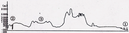 4、单选题 读某大洲沿30°N的地形剖面图,回答下列各题。