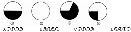 2、单选题 下列四幅图,分别表示北半球冬至日地球上四地的昼夜长短情况(空白部分表示昼,阴影部分表示夜),从南到北排列,正确的一组是