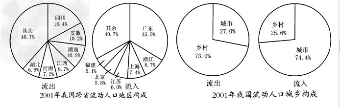 4、单选题 近年来我国人口流动逐年增加,2001年全国流动人口超过了1.2亿,读下图分析回答7—8题。