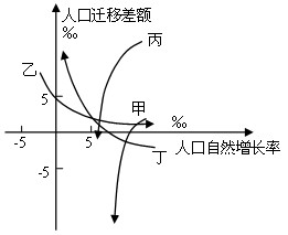 4、单选题 人口迁移差额为人口迁入与迁出的差额占总人口的比重。下图为甲、乙、丙、丁四地近30年的人口变动情况,读图完成1~2题。
