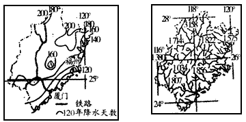 参考答案:(1)在120—140之间均可;自东南向西北递增(或越往西北降水天数越多。)
