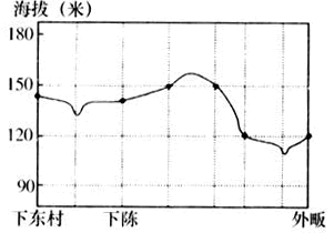 (4)在下图所给的方框内画出沿下东村—下陈—外畈公路线的地形剖面图。