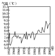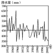 1、单选题 下图为“我国华北地区1954~2002年气温与年降水量变化示意图”,据图回答1—3题。