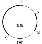 1、单选题  下图示意沿50°纬线的海陆分布状况,图中数字表示经度,P,Q之间和M,N之间为陆地。读图回答1~2题