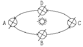 (1)图中A、B、C、D四点的节气(北半球)是A、??B、??