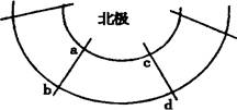 本题解析:根据图示中心极点为北极,故自转方向呈逆时针,从d点看b点与自转方向相反,为向西,A错误;a点距离北极点较d点近,故a点纬度较高,B错误;c点距离北极点较b点近,故c点位于b点的北面;从b点看c点,与自转方向一致,故c点位于b点的东面,故C项正确;a点纬度较b点高,故a点昼夜长短变化幅度较b点大,D错误。