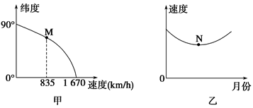 3、单选题 读“地球自转线速度随纬度变化图”(甲)和“地球公转速度变化图”(乙),回答16~17题。