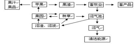 (3)针对果业发展中的问题,试从循环经济的角度设计解决方案。(提示:可用示意图表达)(4分)