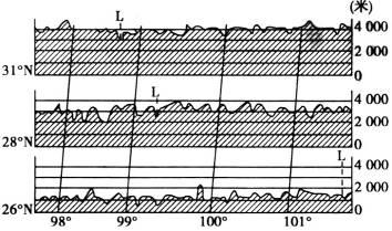 5、单选题 下图是我国某区域按不同纬度所做的地形剖面图,读图完成题。