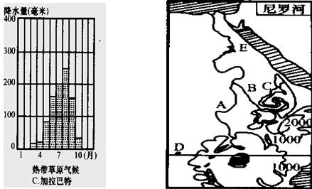 (1)E处是人为修建的?(水利工程), ?其修建的主要目的是什么?。(3分)