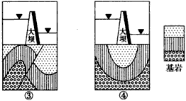 1、选择坝址是修建水库的关键之一。图中所示方案中,构造稳定、地基坚实、最适宜建坝的是