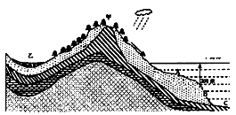1、综合题 下图为“某地地质剖面示意图”。读图完成下列问题。