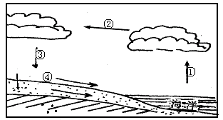本题解析:本题主要考查水循环。图中展示的是海陆间循环的主要环节。①表示海洋水蒸发;②表示水汽输送;③表示降水;④表示地表径流。