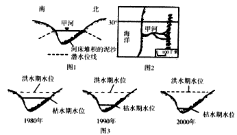 1、单选题 读下图,其中图3为甲河不同年份的水量变化图,完成1—3题。