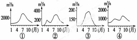 小题1:上面四幅图中表示西北内陆地区河流流量过程的曲线是(?)