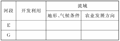 (3)比较E、G两河段及流域的开发利用条件与方向的差异,完成下表。(8分)