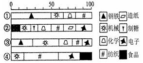 2、单选题 下图为我国四个城市主要部门的结构示意图,读图回答下列各题。
