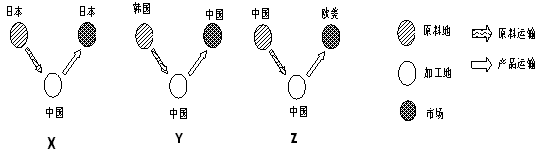2、单选题 读图,X、Y、Z三个外资的企业生产、销售示意图,回答1—2题。
