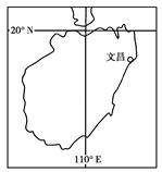 小题2:由图中经纬度可知,文昌经纬度大致是(20°N;110°E),10月1日太阳直射南半球,太阳直射点在文昌的南方;北京时间是12点时,文昌还没到12点,太阳位于文昌偏东位置;综合以上两点,太阳应在文昌的东南位置,选项A正确。