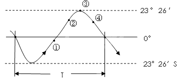 3、单选题  下图为太阳直射点移动示意图,读图回答问题。