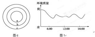 1.图6为某大城市地理环境要素等值线分布示意图,a>b>c,该图最不可能代表的是2.图7为该大城市某监测点环境质量变化状况曲线图,该监测点附近的主要污染源最有可能是