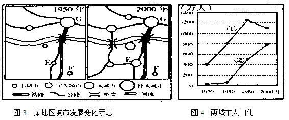 3、综合题  城市是社会经济发展最活跃的地区,读图3、图4回答以下问题。