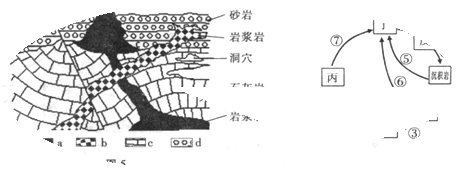 【小题2】丙处岩石的成因与图5地壳物质循环图中数字代表的岩石相符的是