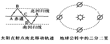 (2)“嫦娥二号”飞越“战神”小行星时,地球位于左图中的 段。(2分)