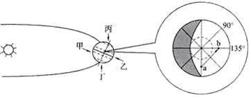 【小题1】观测者从甲.乙.丙.丁四个角度能够观测到右图图所示昼夜状况的是( )
