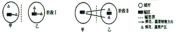 小题2:阶段Ⅱ乙地区的鲜花和蔬菜生产不仅供应当地市场还远销甲地区,而由于鲜花、