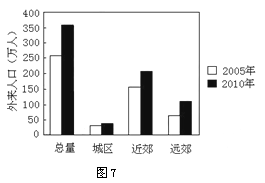 3、单选题 图7是我国东部某城市2005-2010年“外来人口流向调查统计图”。读图回答第问题。