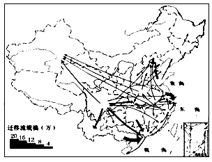 5、综合题 读“20世纪80年代下半期我国务工经商流动人口”示意图,回答问题。