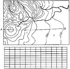 (4)在地形图下的网格中,画出沿AB线的地形剖面图。(4分)