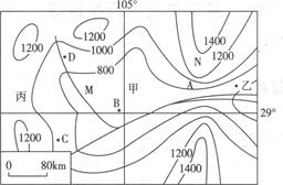(1)甲处的地形是 ,N处的地形是 。