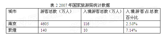 (4)据表概括南京客源特点,并评价敦煌客源市场条件。(8分)