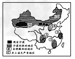 (1)①地区沙漠化的人为原因是______________?。为防治西北地区土地的沙漠化,我国正在这些沙漠化严重的地区进行的巨大林业生态工程是:______? 。