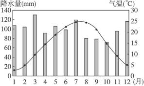 2、单选题 读“田纳西河流域某地降水量与气温变化图”,完成下题。