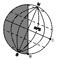 2、综合题 (8分)图为太阳光照图,斜线(阴影)部分表示夜半球,空白部分表示昼半球,读后完成下列要求