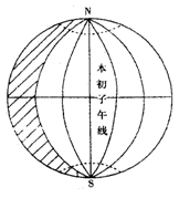 1、单选题 读图(阴影部分表示黑夜),据此回答问题。