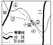 小题1:图中两条小河的流量相当。进入小镇的引水线最合理的是