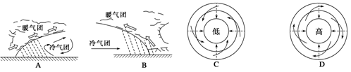 2.上题所述天气系统不同季节造成天气现象不同,下列与该天气系统无关的是